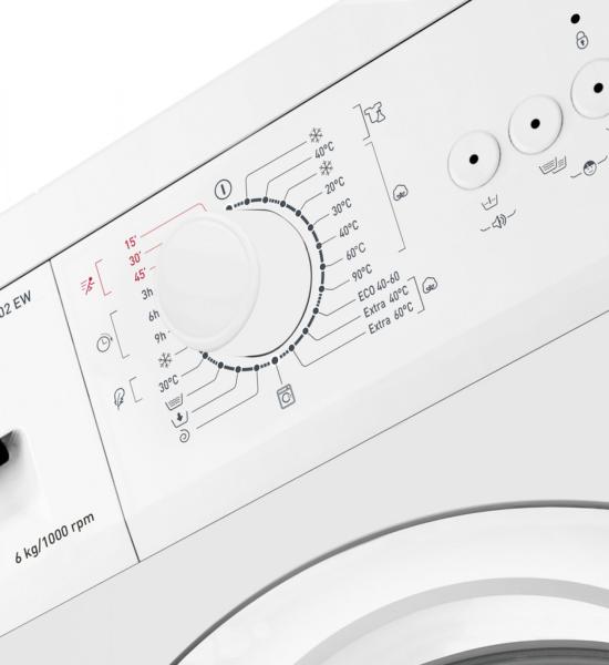 Kijelző híján ez a mosógép a klasszikus kezelőfelületet kínálja, ami egyszerű és intuitív használatot tesz lehetővé. Késleltetett indítás/befejezés funkcióval rendelkezik, így időbeosztásához igazíthatja a mosási ciklusokat. A mosóprogramok között megtalálható a gyors mosás, pamut és gyapjú mosás, amelyek megkönnyítik a különböző típusú textíliák kezelését.