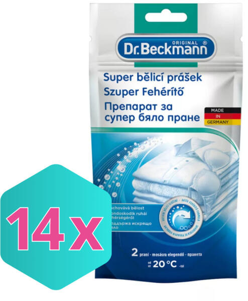 A Dr. Beckmann Szuper fehérítő ragyogó, hosszantartó fehérséget biztosít, eltávolítja a sárgás és szürkés elszíneződéséeket és visszaadja a fehér ruhák eredeti ragyogását. Már 20 °C-os vízben történő mosáskor kifejti hatását.