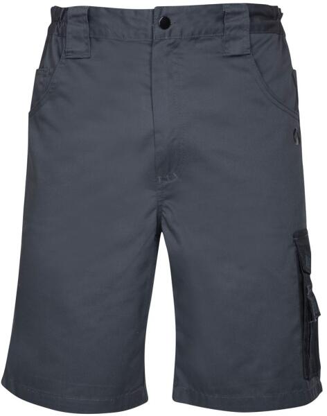 Modern, 4TECH munkavédelmi rövidnadrág vonzó szürke-fekete vagy kék-fekete kivitelben. A rövidnadrág kiváló minőségű kevert anyagból készül:  35% pamut, 65% PES, súlya 240 g/m2. Többfunkciós oldalsó szerszámzsebbel és praktikus hátsó zsebekkel rendelkezik. 46-64 méretben elérhető.