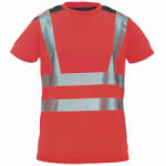 Nagy láthatóságú (HI-VIS) póló - Könnyű poliészter single jersey anyagból - Kontrasztos fekete vállrész fényvisszaverő díszítéssel - 2 db 5 cm-es fényvisszaverő csík a testen és a vállakon...