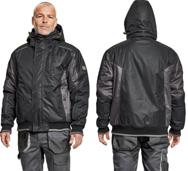 férfi téli pilóta levehető kapucnival, 1 cipzáras mellzseb, 2 oldalsó cipzáras zseb, 2 belső cipzáras zseb, lábbal borított fő cipzár tépőzáras, kapucniban húzózsinór, gallérban és kapucniban polár, ujjakon rugalmas bordás kötések ill. alsó rész, gépi hímzés lehetősége, fényvisszaverő elemek színben