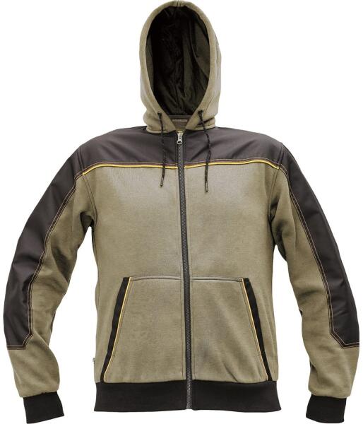 Minőségi férfi cipzáras pulóver kapucnival. A váll és a könyök területe meg van erősítve Oxford anyaggal, így a pulóver még nagyobb munkaterhelésnek is képes ellenállni. Melegen tart, mert belül fésült. A kényelmesebb viselés érdekében elasztikus bordázott mandzsetta van az ujjain és az alsó szegélyén. Elöl 2 kenguru zseb található. Kis kontrasztos részletekkel és kis hurkokkal rendelkezik, amelyek segítségével a CREMORNE téli kabáthoz lehet rögzíteni.