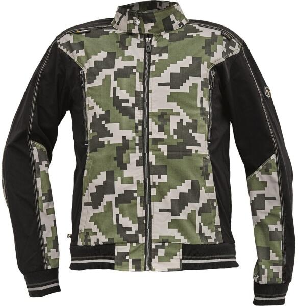 Nagyon jó minőségű és kényelmes férfi munkaruha felső, modern geometriai terepmintával. A dzseki álló gallérral, ergonomikus illeszkedéssel és teljes hosszúságú cipzárral rendelkezik. Innovatív TRIFIBETEX® rugalmas anyagból készül. A vállrész tartós CORDURA anyaggal van megerősítve. 2 oldalsó zsebbel, 2 cipzáras mellkasi zsebbel és a jobb láthatóság érdekében színes fényvisszaverő kiegészítőkkel is rendelkezik.