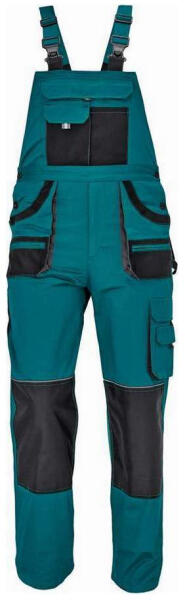 Férfi kertésznadrág rugalmas derékkal, széles pántokkal és multifunkciós zsebekkel ellátott.