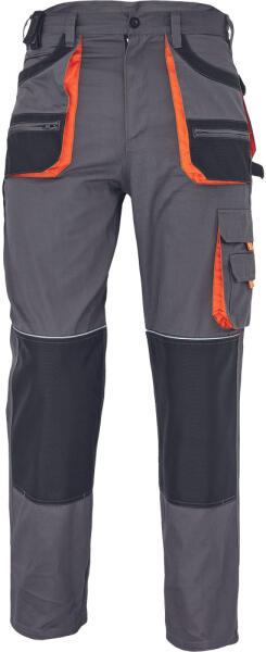 férfi munkanadrág 6 multifunkciós zseb OXFORD poliészter erősítésekkel az igénybevett részeken térdvédő behelyezésére alkalmas, megerősített térdrész leengedhető szárak anyaga 100% pamut, 235g/m2