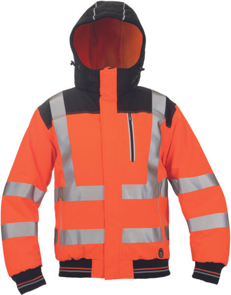 bélelt jólláthatósági téli pilóta dzseki levehető kapucnival, dekoratív tűzésekkel a TPU membránnak köszönhetően vízálló kivitel a vállrészen Oxford 600D anyagból készült megerősítő rátétekkel van ellátva 1 cipzáras zsebbel, 2 oldalzsebbel és 2 zárható belső zsebbel rendelkezik a derékrészen, az ujjakon és a vállakon 5cm-es nyomtatott fényvisszavető csíkok kerültek elhelyezésre