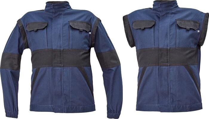 Mérettáblázatot a bal felső sarokban találja. Cikkszám alatt megtalálja az aktuális készletinformációt a méret kiválasztását követően. Férfi cipzáras munkakabát levehető újakkal; 2 első zseb, 2 mellzseb; megerősítés a váll és könyök részeken; rugalmas mandzsetta és alsó derékszegély; anyag: 100% pamut, anyagvastagság: 260 g/m2