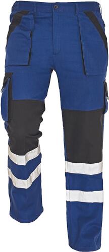 férfi munkanadrág rugalmas derékkal;2 első zseb, 1 oldalzseb, 2 hátsó zseb;megerősített térdrész;fényvisszavető csíkok a nadrág alján;a szárak hossza meghosszabbítható;anyag: 100% pamut, anyagvastagság: 260 g/m2