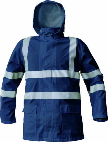 A Cerva láthatósági esőöltönye egy prémium minőségű, esőálló ruházat, mely tökéletes választás a zord időjárási viszonyok között végzett munkákhoz. 200 g/m2 súlyú, poliészter anyaga biztosítja a megfelelő szigetelést és tartósságot. Az anyag vastagsága 0,5 mm, így védi a viselőjét a nedvességtől és a széltől, miközben megőrzi a kényelmet. A láthatósági esőkabát gallérba rejtett kapucnija extra védelmet nyújt viselője fejének és nyakának az eső és a szél ellen. A láthatósági esőnadrág rugalmas dereka és szűkíthető szárai pedig tökéletes illeszkedést és kényelmes viseletet biztosítanak. Az esőruha együttesen két zseb található, melyekben könnyedén tárolhatók a szükséges eszközök, személyes tárgyak. Élénk színének és fényvisszaverő szalagjainak köszönhetően pedig kiemelkedő láthatóságot biztosít gyenge és rossz látási viszonyok között is. Ideális választás építkezéseken, mezőgazdasági munkák során vagy bármilyen kültéri tevékenységhez, ahol a láthatóság és a védelem elengedhetetlen. Válaszd ezt a láthatósági esőruha együttest, és tapasztald meg a prémium minőségű védelem és a kényelem kombinációját az esős napokon!