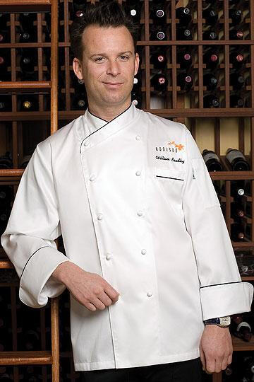 100% egyiptomi pamut, fekete szalaggal szegélyezve, mellkasi és ujjzseb, kétsoros záródással. ChefWorks