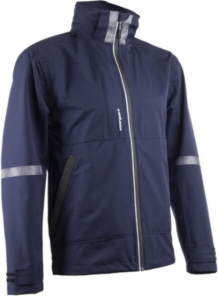• Álló gallér és YKK vízálló cipzár fényvisszaverő csíkkal