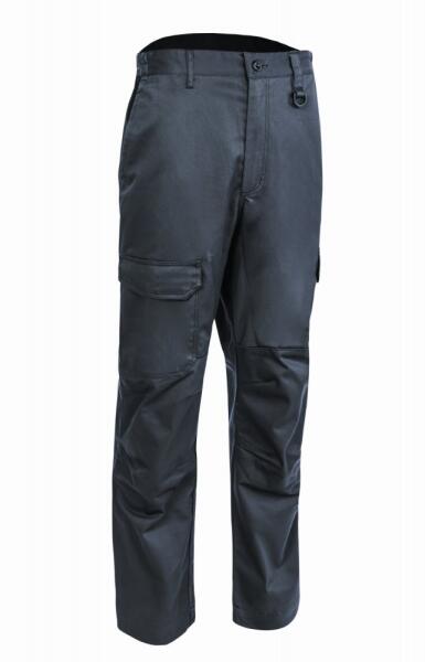 300 g/m2 vastag, 60% pamut + 40% poliészter kevertszálas alapanyag regular szabású, vastag kopásálló deréknadrág, ideális intenzív ipari használatra, teljesen fémmentes övbújtatók, kényelmi betét a láb között, megemelt hátrész gombbal és cipzárral záródó, gumírozott derék megerősített térdrész a száron még 5 cm-es lehajtási lehetőség két bebújós oldalzseb két farzseb egy fedett cargo zseb egy megerősített vonalzó zseb egy fedett combzseb műanyag kulcs- vagy kitűzőtartó