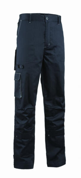 comfort fit szabású övbújtatók, biztonsági varrás az ülepen gombbal és cipzárral záródó, gumírozott derék dupla térdfolt bőségránccal és tépőzáras térdeplőtasak, rendelhető térdvédővel (8KNEE) tépőzárral állítható bokarész, száron még 5 cm-es lehajtási lehetőség a betéttel azonos színű varrás két bebújós oldalzseb két fedett farzseb egy zárható hátsó telefonzseb egy háromrészes szerszámtartó két fedett rávarrott zseb a combon egy kitűzőtartó gyűrű
