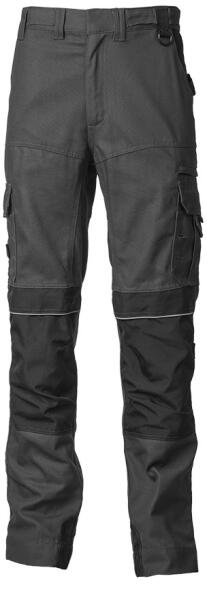 300 g/m2 vastag, 60% pamut és 40% PES masszív alapanyag + Cordura® betétek + térdeplő tasak gumírozott derék és övbújtatók tartók opciós zsebekhez, szerszámtartóhoz, fényvisszaverő díszcsíkok biztonsági tripla varrás, üleperősítéssel fedett, YKK hosszú élettartamú cipzár két oldal- és két hátsó zseb (az egyik zárható), és két cipzáras és két tépőzáras combzseb + szerszámtartók száron 5cm-es lehajtási lehetőség