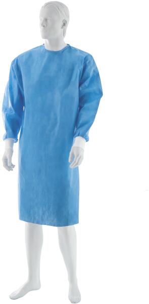 Matodress STANDARD steril műtősköpeny, 1 db Kék színű, nem szőtt polipropilén anyagból készült, amely gátat képez a por, a haj és a hámlott bőrrel szemben, és ellenáll a kis mennyiségű folyadék behatolásának. Hosszúujjú, poliészter húzózsinórral, tépőzárral a nyakkivágásnál. TERMÉKJELLEMZŐK típus: műtősköpeny STANDARD anyag: nem szőtt polipropilén sterilitás: steril szín: kék csomagolás: papír- és fóliatasak MÉRETTÁBLÁZAT