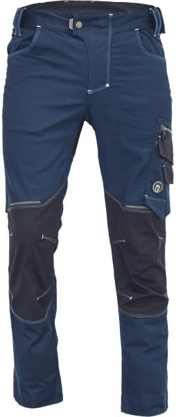férfi munkanadrág innovatív rugalmas Trifibetex® anyagból CORDURA® betétekkel elöl 2 ékzseb hátul 2 tépőzáras foltzseb bal oldalon nagy multifunkciós zseb jobb oldalon multifunkciós zseb vonalzónak kés- és ceruzatartó fém "D" gyűrű rugalmas derék hosszabbítható szárak fényvisszavető részletek dekoratív tripla tűzés kontrasztos színnel kalapácstartó