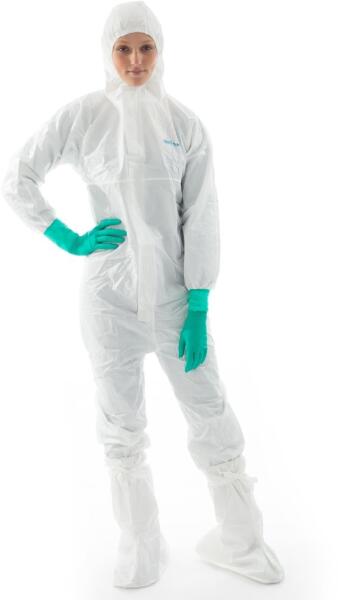 A BioClean-D fejvédős kezeslábas egy eldobható védőruha, amely védőhajtókával ellátott első cipzárral, elasztikus fejvédővel, hátrésszel, mandzsettával és bokarésszel, valamint biztos rögzítést lehetővé tevő hüvelykujj-hurkokkal rendelkezik. Az antisztatikus, könnyű, minimálisan szöszölődő CleanTough anyag kényelmes viseletet biztosít, és számos vegyi anyag ellen nyújt védelmet beleértve akemoterápiás gyógyszereket is.
