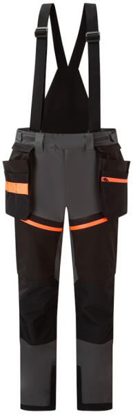 A Portwest EV4 termékcsalád munkavédelmi nadrág a profi munkaruházat legújabb generációját képviseli, amelyet kifejezetten a nehéz körülmények között dolgozók igényeihez fejlesztettek ki. Ez a vízálló, szélálló és lélegző háromrétegű streccs anyagból készült nadrág egész évben biztosít védelmet és komfortot, miközben praktikus kialakításával megkönnyíti a mindennapi munkát. Főbb jellemzők: 3 rétegű dinamikus stretch, softshell anyaga biztosítja a vízállóságot, szélállóságot és légáteresztést. Ezáltal egész évben védelmet nyújt, legyen szó hideg, szeles vagy csapadékos időről. Stretch tulajdonsága pedig lehetővé teszi a nagyobb mozgásszabadságot, így a nadrág kényelmes marad aktív mozgás vagy hosszú munkanapok alatt is. A vízálló nadrág varratait speciális ragasztással látták el, hogy tovább növeljék a nadrág vízálló képességét. Hajlított térd kialakítása támogatja a természetes testmozgást, megkönnyíti a guggolást és hajlítást. Egyedileg szabályozható derékpántja pedig biztosítja a tökéletes illeszkedést és stabil tartást. A hátulján található zippzáras kantárja levehető, így a mellesnadrágból derekas nadrággá alakítható, növelve a ruhadarab használati lehetőségeit. Praktikus zsebeiben könnyedén és biztonságosan tárolhatók a szükséges eszközök, személyes tárgyak. Belső csizma klipsze pedig segít rögzíteni az eső nadrág szárát a csizmához, hogy megakadályozza és csökkentse a szél vagy a szennyeződések bejutását. Ez a shell nadrág egy prémium kategóriás, technikailag fejlett munkaruhadarab, amely ideális a hideg, szeles vagy esős körülmények közötti munkavégzéshez. Kombinálja a kényelmet, tartósságot és magas szintű víz- és szélállóságot, miközben számos praktikus zsebbel és funkcióval segíti a felhasználó hatékonyságát és biztonságát. A levehető kantár és az ergonomikus kialakítás miatt rendkívül sokoldalú viselet.