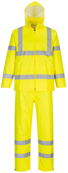 Rendkívül praktikus és vízálló, láthatósági esőruha. A H448 a 190T szövet minden kiemelkedő tulajdonságával, valamint azzal a céllal, hogy viselőjét esős időjárási körülmények között is láthatóvá, biztonságban és szárazon tartsa, kivételes ár-érték arányt kínál. Ez a ruhadarab könnyen feltekerhető és tárolható, ha nincs használatban.