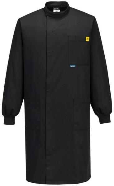 Szállítási idő: 3-5 nap ESD környezetben történő használatra alkalmas kabát, amely az EN 61340-5-1 szabvány szerint tesztelt, gépben mosható (60°C), tartós poliészter/pamut szövettel, szövetbe szőtt szénszálakkal (ESD és antisztatikus tulajdonságokat biztosítanak), a könnyű nyitás érdekében hat sor patenttal, meleget és extra komfortot biztosító bordás mandzsettával, 3 sokoldalú, praktikus tárolózsebbel, tolltartó zsebbel, 2 combzsebbel és CE minősítéssel rendelkezik.