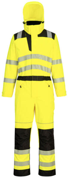Prémium PW3 Hi-Vis overál, amely a teljes biztonságot a legmodernebb designnal ötvözi. A méltán híres 300D Oxford PU bevonatú, tartós, foltálló alapanyagból készült, modern kialakítású kabát számos kiemelkedő tulajdonsággal rendelkezik, beleértve a levehető, steppelt bélésű kapucnit, a maximális hővédelmet biztosító vastag téli bélést, az extra hosszú oldalsó zippzárakat a könnyű fel- és levétel érdekében, valamint 8 funkcionális, biztonságos tárolózsebet, beleértve a felülről tölthető térdvédő zsebeket is.