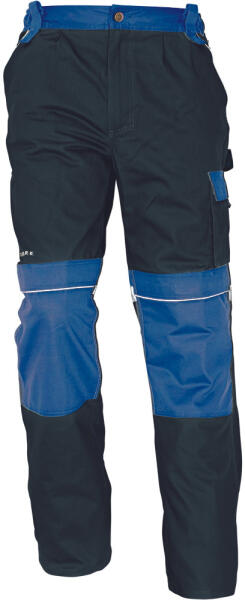 strapabíró férfi munkanadrág fém cipzáras és pantentos záródással rugalmas derékrésszel és térdvédő behelyezésére alkalmas megerősített térdrésszel készül 5 funkcionális zsebbel, kis szerszámokhoz megfelelő hurkokkal fényvisszavető kiegészítők