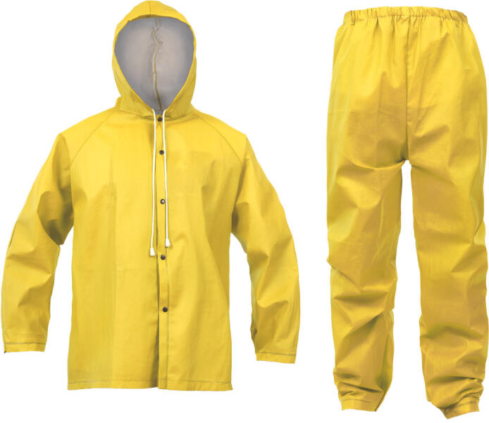 vízálló nadrág és kabát együttes kapucnival, ragasztott varratokkal a kabát patenttal záródik a hónaljrészen szellőzőbetétes kialakítású a kapucni zsinórbehúzással állítható a mandzsetták az ujjakon és a nadrágszárakon patenttal állíthatóak a nadrág rugalmas derékkal készül anyag: 100%-ban újrahasznosítható, nagy sűrűségű PE vízoszlop: 13 000 mm