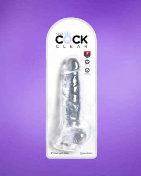 King Cock, Pipedream King Cock Realistic Dildo With Testicles 8" Clear - Realisztikus dildó