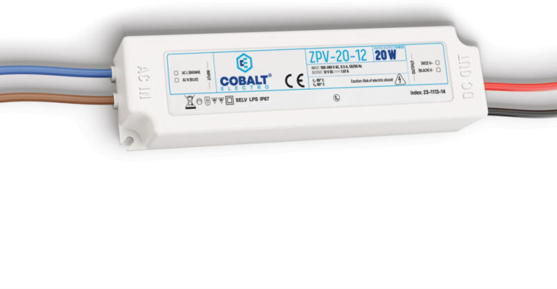 COBALT termékcsalád COBALT Led tápegység ZPV-20-12 20W 12V 1, 67A IP67 (ZPV-20-12)