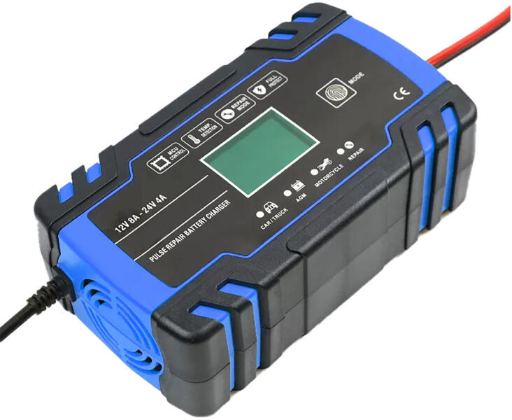Automata akkumulátortöltő 12 V és 24 V rendszerekhez Ez a kék színű, 8 A-es automata akkumulátortöltő ideális választás személyautók, kisteherautók, motorkerékpárok, csónakok és egyéb járművek 12 V-os és 24 V-os akkumulátorainak töltéséhez és karbantartásához. Intelligens mikroprocesszoros vezérlése gondoskodik a biztonságos, kíméletes és hatékony akkumulátortöltésről, minimalizálva a túlmelegedés, túltöltés és fordított polaritás kockázatát. Intelligens töltésvezérlés és automatikus üzemmód A korszerű elektronikának köszönhetően a töltő automatikusan felismeri az akkumulátor feszültségét (12 V vagy 24 V), és ennek megfelelő töltési karakterisztikát alkalmaz. A beépített mikroprocesszor folyamatosan monitorozza a kapocsfeszültséget és az áramerősséget, így a töltési folyamat minden szakaszban optimális.