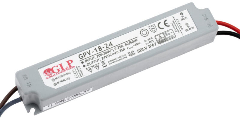 GLP FESZÜLTSÉG LED tápegység 24V 18W 0.75A GPV-18-24 IP67 HERMETIC (ZASSY0339C)