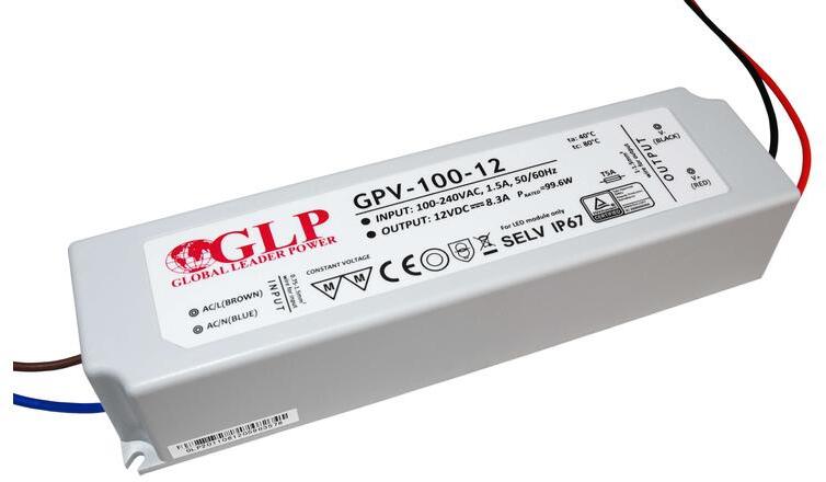 GLP GPV-100-12, GLP tápegység GPV sorozat 12V/8.3A, CV, nem PFC, IP67 műanyag ház (MP-GPV-100-12)