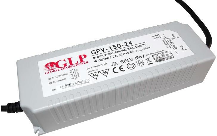 GLP GPV-150-24, GLP tápegység GPV sorozat 24V/6A, CV, nem PFC, IP67 műanyag ház (MP-GPV-150-24)