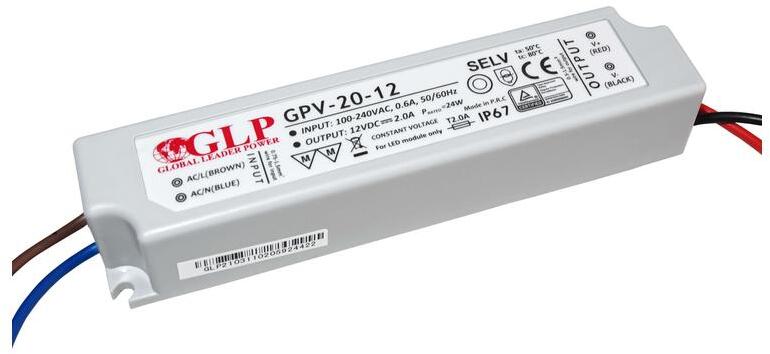 GLP GPV-20-12, GLP tápegység GPV sorozat 12V/2A, CV, nem PFC, IP67 műanyag ház (MP-GPV-20-12)