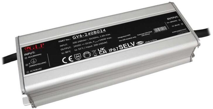 GLP GV6-240B024, GLP tápegység 240W: 24V/10A, CV, fémház, téglalap alakú (MP-GV6-240B024)