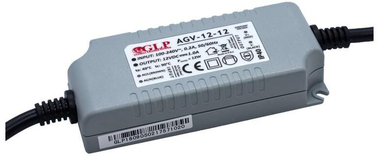 • GLP: tápegység 12V/1A, CV, IP40, műanyag ház