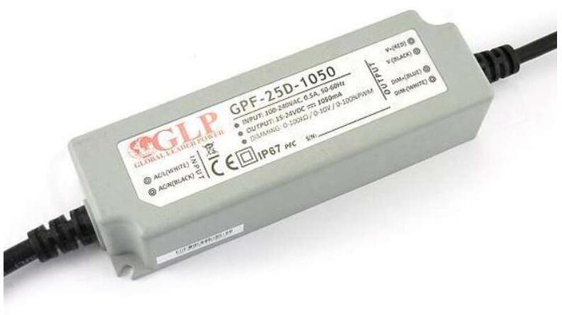 GLP Tápegység GLP GPF-25D-1050, GLP LED meghajtó, állandó áram, 25 W, 1050 mA/15-24 VDC, IP67, 3 az 1-ben fényerőszabályozás (MP-GPF-25D-1050)