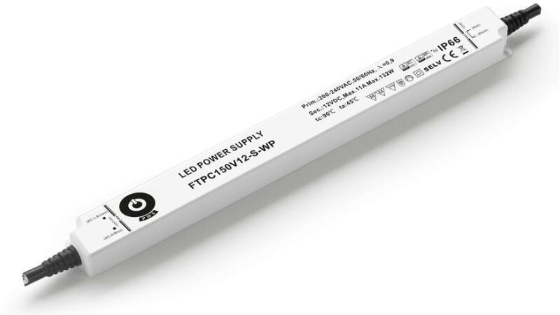 POS Power Tápegység POS FTPC150V12-S-WP, POS LED meghajtó 12V/11A CV, IP66 vékony műanyag ház (MP-FTPC150V12-S-WP)