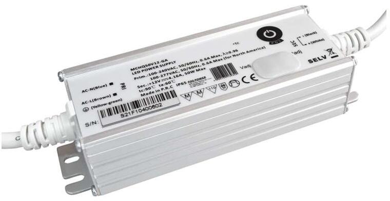 POS Power Tápegység POS MCHQ50V12-GA, LED meghajtó 12V/4.16A 50W CV, fémház, PFC, univerzális AC bemenet (max 305VAC), Uo/Io állítható (MP-MCHQ50V12-GA)