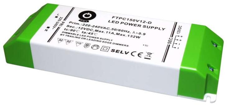 POS Tápegység POS FTPC150V12-D, POS LED meghajtó 12V/11A 48-132W CV, műanyag ház, TRIAC/ELV AC fényerőszabályozás (MP-FTPC150V12-D)