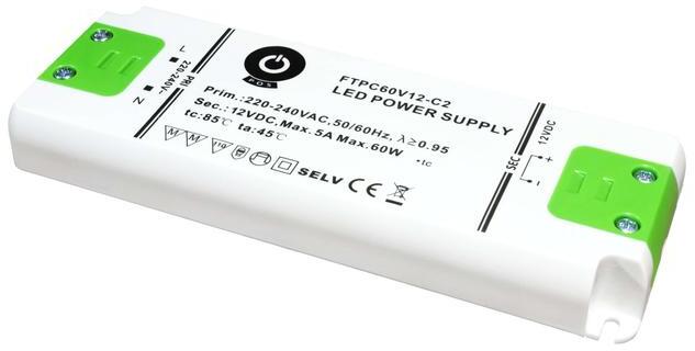 POS Tápegység POS FTPC60V12-C2, POS LED meghajtó 12V/5A CV, kompakt műanyag ház, ultravékony 160 x 58 x 18 mm (MP-FTPC60V12-C2)