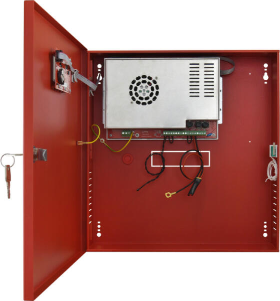 Szünetmentesíthető tápegység tűz- és füstjelző rendszerekhez; 27,6V / 10A / 2x17Ah; LCD; IP30