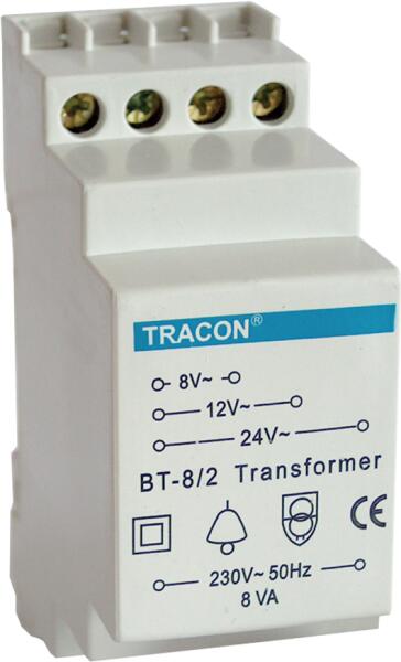 TRACON Biztonsági (csengő) transzformátor, 230V / 8-12-24V AC, max. 8 VA (BT-8/2)