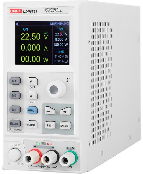 Az UDP6700 sorozat széles kimeneti tartományú és nagy hatásfokú tápegységek. Költséghatékony programozható egyenáramú tápegységek biztosítására összpontosít az oktatás, a tudományos kutatás, a K+F, a gyártás és az ipari területek számára. A magasabb teljesítménytényezőnek köszönhetően az alkalmazások szélesebb körét lehet kielégíteni. A HDLCD kijelző jobb mérési és hangolási élményt nyújt.
