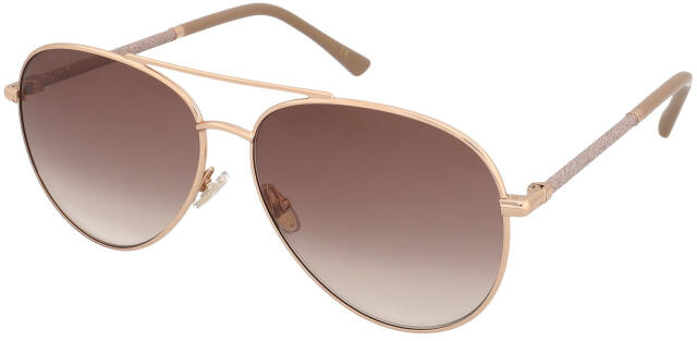 Válasszon egyet a kifinomult stílusú Jimmy Choo szemüvegek közül. A divattervező minden erőfeszítést megtett, hogy rendkívüli stílusú, a szokványos daraboktól eltérő termékeket hozzon létre. Ezek a szemüvegek el fogják nyerni tetszését, ha komplex és modern kiegészítőt keres. A szemüvegről Pilóta formájúak, ezért tökéletesek minden arcformához. Ezeket a kereteket rugalmas zsanérral látják el, amely kiváló komponens azok számára, akik gyakran leveszik a szemüvegüket!A keret színe az egyik legtrendibb szín ami kapható, a rózsa arany, amely remekül áll azoknak, akik meleg tónusú bőrrel rendelkeznek. Az anyag főként fémből készül, amely nemcsak rendkívül tartós, de elegáns és stílusos megjelenést is biztosít. A lencse színe barna, ami a napszemüvegek legelterjedtebb lencseszíne és nagyon hatékony minden fényviszony esetén. Ezeknek a szemüvegeknek átmenetes lencséje van, ami azt jelenti, hogy felsők sötétebbek, és alulról fokozatosan világosabbá válnak. Ez a hatás nem csak divatos és elegáns, de vezetésre is tökéletes, valamint lehetővé teszi a világosabb kilátást alulról, miközben megakadályozza, hogy a felülről sütő napfény károsítsa szemét. Szeretné látni, hogy ezek a szemüvegek tökéletesen illenek-e Önhöz? Tekintse meg őket közelebbről a virtuális felpróbálás funkció segítségével!