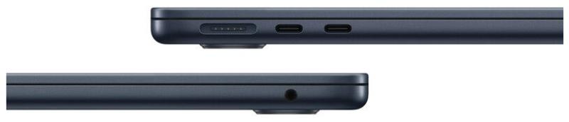 Apple MacBook Air 13"Operációs rendszer: macOS Sequoia Processzor: Apple M3, 8-magos CPU (4P 4E), 10-magos GPU, 16-magos Neural Engine, 100 GB/s átviteli sebességgel. Memória: 24GB Merevlemez: 512 GB SSD Optikai meghajtó: nincs Memóriakártya-olvasó: nem Megjelenítés13,6" Liquid Retina True Tone, 2560×1664, 224 képpont per hüvelyk, LED háttérvilágítás, 500 nits, 1 milliárd szín támogatása Audio4x hangszóró, Dolby Atmos; 3x mikrofon Webkamera: 1080p FaceTime HD Helymeghatározó eszközForce Touch trackpad Háttérvilágítású billentyűzet: igen, környezeti fényérzékelővel Billentyűzetkiosztás: CZ Numerikus billentyűzet: nem Ujjlenyomat-olvasó: touch ID Hálózati és vezeték nélküli kommunikációHálózat: nem Vezeték nélküli kommunikáció: Wi-Fi 6E (802.11ax)Bluetooth 5.3 KikötőkUSB: 2× Thunderbolt/USB4 (töltés, DisplayPort, Thunderbolt 3: legfeljebb 40 Gb/s, USB4: legfeljebb 40 Gb/s)Egyéb portok: 1× MagSafe 3, 1× 3,5 mm-es fejhallgató-csatlakozóAkkumulátor és tápegységAkkumulátor: beépített 52,6Wh lítium-polimer akkumulátor Akkumulátor-üzemidő: akár 15 óra vezeték nélküli webböngészés Teljesítmény: 35 W-os USB-C adapter TervezésSzín: sötét tinta (Midnight) Méretek: 304,1x215x11,3mm Súly: 1.24kg A dobozban13" MacBook Air35 W-os kétportos USB-C hálózati adapterUSB-C/MagSafe 3 kábel (2m)CZ utasítások mellékelve