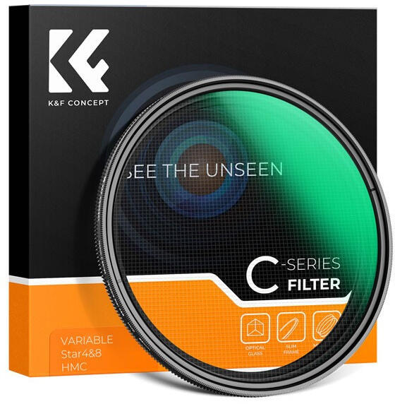 K&F Concept Csillagfény Szűrő - V4-8 Special Effects Filter - 52mm A K&F Concept 52mm 4x-8x variálható csillagszűrő egy nagyszerű kreatív fényképezők számára, amely lehetővé teszi a csillaghatások kiemelését és egyedi vizuális élmények létrehozását. Az, a kiváló minőségű optikai üveg és a vízálló, karcálló kialakítás biztosítja a hosszú távú megbízhatóságot és teljesítményt. Ezzel a szűrővel a fotósok új dimenziókat nyithatnak meg a fényképezés terén, és lenyűgöző, művészi képeket készíthetnek.