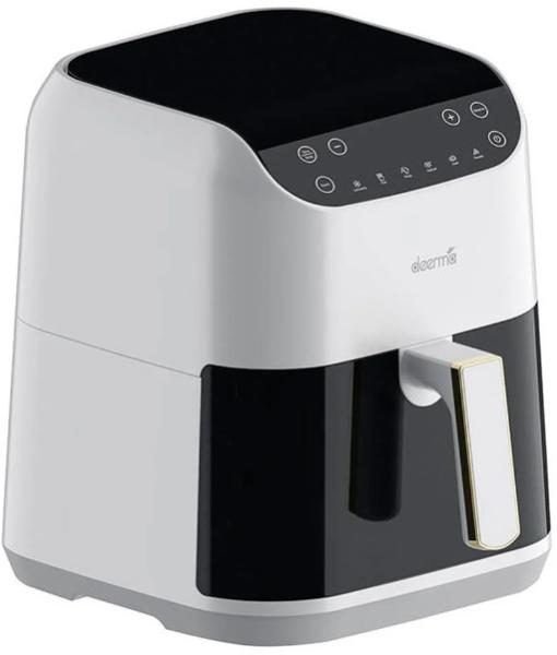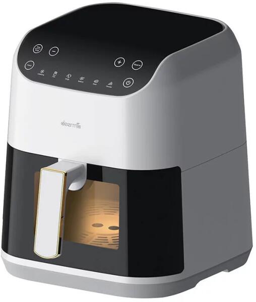 A Deerma DEM-KZ130W egy 1300 W-os légfritőz, amely keringtetett forró levegőt használ zárt térben, hogy finom ételeket készítsen Önnek. Az Ön biztonsága érdekében a készülék dinamikus NTC hőmérséklet-szabályozással és égési sérüléseket védő fogantyúval van felszerelve, így még élvezetesebb a használata. Ezenkívül a légfritőzön vannak gombok a hőmérséklet változtatására, a sütés késleltetési idejének beállítására, a menü kiválasztására, valamint a be- és kikapcsolásra.