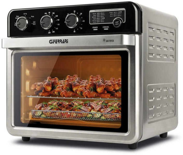 G3Ferrari G10221 Friggisano 32L forrólevegős sütő és multifunkciós sütő – 32 liter, 6 fűtőelem, 5 funkció, max. 230 °C, belső világítás. Profi teljesítmény nagy adagokhoz!