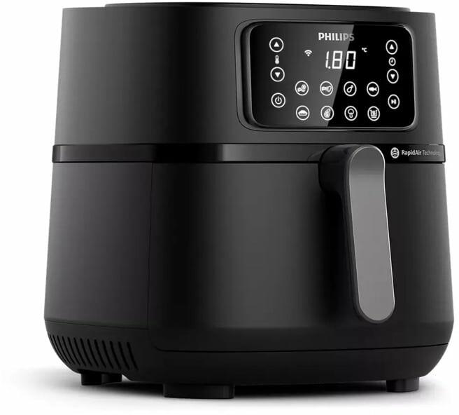 Philips Ovi XXL 5000 HD9285/90 - Az Ön sokoldalú főzőtársa az egyenletesen elkészített ételekhez Fedezze fel a Philips 5000 Series XXL Connected Airfryer erejét, amely akár 16 főzési funkcióval rendelkezik, a RapidAir+ Technology kiváló hőkeringésének köszönhetően, hogy ízletes és egyenletesen elkészített ételeket hozzon létre. A KAPCSOLATBAN KÉPZETT FŐZŐTÁRS AZ EGÉSZSÉGES CSALÁDI ÉTELEKHEZ A intuitív HomeID alkalmazás zökkenőmentesen csatlakozik az Airfryerhez, így elengedhetetlen társ a főzés során. Túlléphet az egészséges sütésen, és felfedezheti az érdekes és ízletes új recepteket, sőt, távolról nyomon követheti a főzést az alkalmazáson keresztül. TELJES FÉNYEZÉS ÉS MULTIFUNKCIONALITÁS, MINDEN EGYBEN AZ AIRFRYERBEN A Philips Airfryer 5000 Series XXL Connected 16 különböző főzési funkcióval rendelkezik: fry, bake, grill, roast, dehydrate, toast, defrost, reheat, ferment és még sok más. ÍZLETES AIRFRYER RECEPTEK AZ EGÉSZSÉGES ÉLETÉRT MINDENNAP Fedezze fel a számos* ínycsiklandó, gyors és egészséges receptet az Airfryerhez. A HomeID receptek táplálkozási szakértők által válogatottak, így könnyen hozhat jó döntéseket minden nap. VÁLASSZON, ÁLLÍTSON BE ÉS RELAXÁLJON Válasszon egy receptet, küldje el az Airfryerhez, és figyelje a főzés előrehaladását a kényelmes kanapéjáról. A HomeID App minden lépésnél útmutatást ad, hogy minden nap otthon készített ételeket készíthessen, amelyeket Ön és családja imád. A hangvezérlés is engedélyezve van, és kompatibilis az Amazon Alexa-val. EGÉSZSÉGES SÜTÉS A RAPID AIR TECHNOLOGY-NAL A Rapid Air Technology, egyedi csillaghal design-jával, keringeti a forró levegőt, így ízletes ételeket készíthet, amelyek kívül ropogósak, belül pedig puha állagúak, minimális vagy nullára csökkentett olajjal. ROPOGÓS ÉTELEK KÍVÜL ÉS PUHA BELSŐVEL A Philips Airfryer 5000 Series XXL Connected forró levegőt használ kedvenc ételeinek ropogós tökéletessé tételéhez. XXL MÉRET. AZ EGÉSZ CSALÁDNAK A Philips Airfryer 5000 Series XXL Connected a családjának igényeit szem előtt tartva készült. Az 1.4Kg kapacitású kosár, a 7.2L serpenyővel együtt segíti a változatos ételek elkészítését. Legfeljebb 6 étkezési adagot készíthet egyetlen alkalommal családja és barátai számára. ENERGIA- ÉS IDŐMEGTAKARÍTÁS A Philips Airfryerek hatékonyan működnek, hogy megtakarítsák az időt és az energiát, ízletes ételeket készítve 60%-kal kevesebb energiafogyasztással és 40%-kal gyorsabban, mint egy hagyományos sütő. ***KÖNNYEN HASZNÁLHATÓ ÉS TISZTÍTHATÓ Az összes eltávolítható rész mosogatógépben mosható. Az Airfryer QuickClean kosara tapadásmentes bevonattal rendelkezik a könnyű tisztítás érdekében. A levegőben való sütés azt is jelenti, hogy otthona mentes lesz a hagyományos olajsütés szagától. * A receptek száma országonként változhat. ** A Philips hagyományos olajsütőjében készült friss sült krumplival összehasonlítva. *** Az átlagos százalékok belső laboratóriumi méréseken alapulnak a HD9280, HD9650, HD9860, HD9270, HD9285, HD9252, HD9200, HD9255, HD9880 modellek esetén; egy csirkemell (AF beállítás 160C, előmelegítés nélkül) vagy lazacfilé (AF beállítás 200C, előmelegítés nélkül) elkészítése összehasonlítva egy A osztályú sütő használatával. A pontos százalékok változhatnak és különböznek az Airfryer típusa és receptje szerint.
